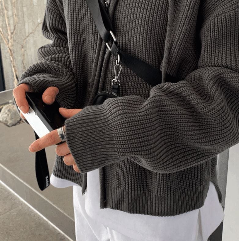 CHARCOAL KNITTED ZIP-UP HOODIE
